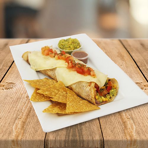 refrito, guacamole, pico de gallo, pimentón, maíz tierno, lechuga, champiñones, salsa bbq y queso.