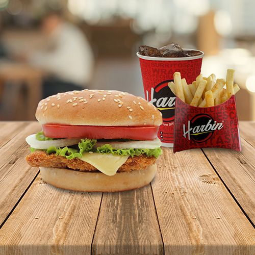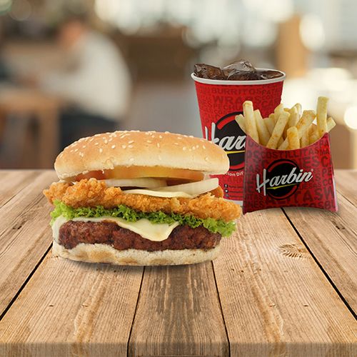 Carne 100% de res con queso, pechuga a la plancha y vegetales.