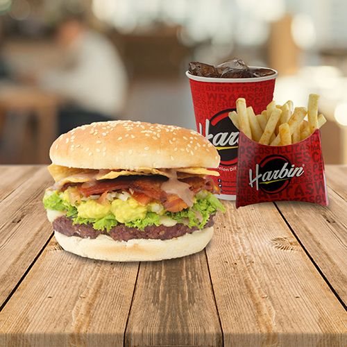Carne 100% de res con queso, tocineta, frijol refirto, guacamole,nachos y pico de gallo.
