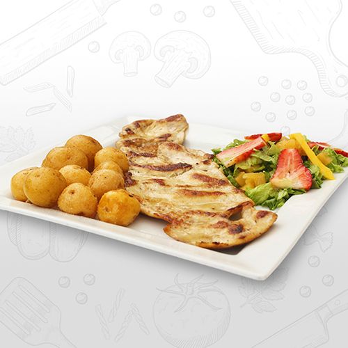Exquisita pechuga en filete acompañada de papa francesa o croquetas de yuca y ensalada.