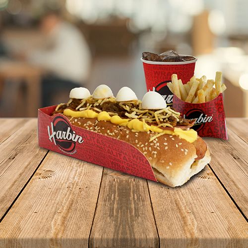Salchicha americana, queso, champiñones salteados, huevos de codorniz y salsas.
